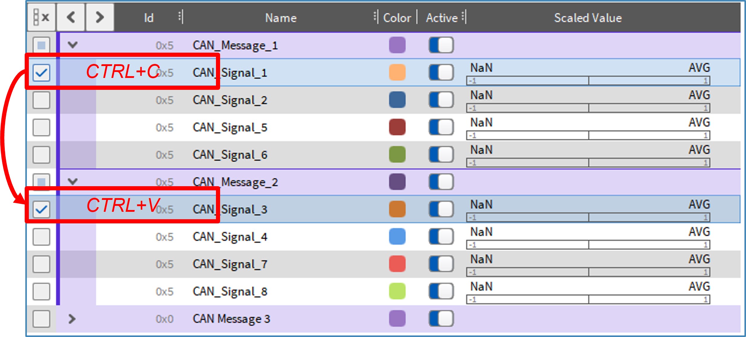 Another new functionality that increases the usability, is the possibility to duplicate CAN messages and signals in the message and signal editor. You can now also drag and drop CAN signals from one CAN message to another.