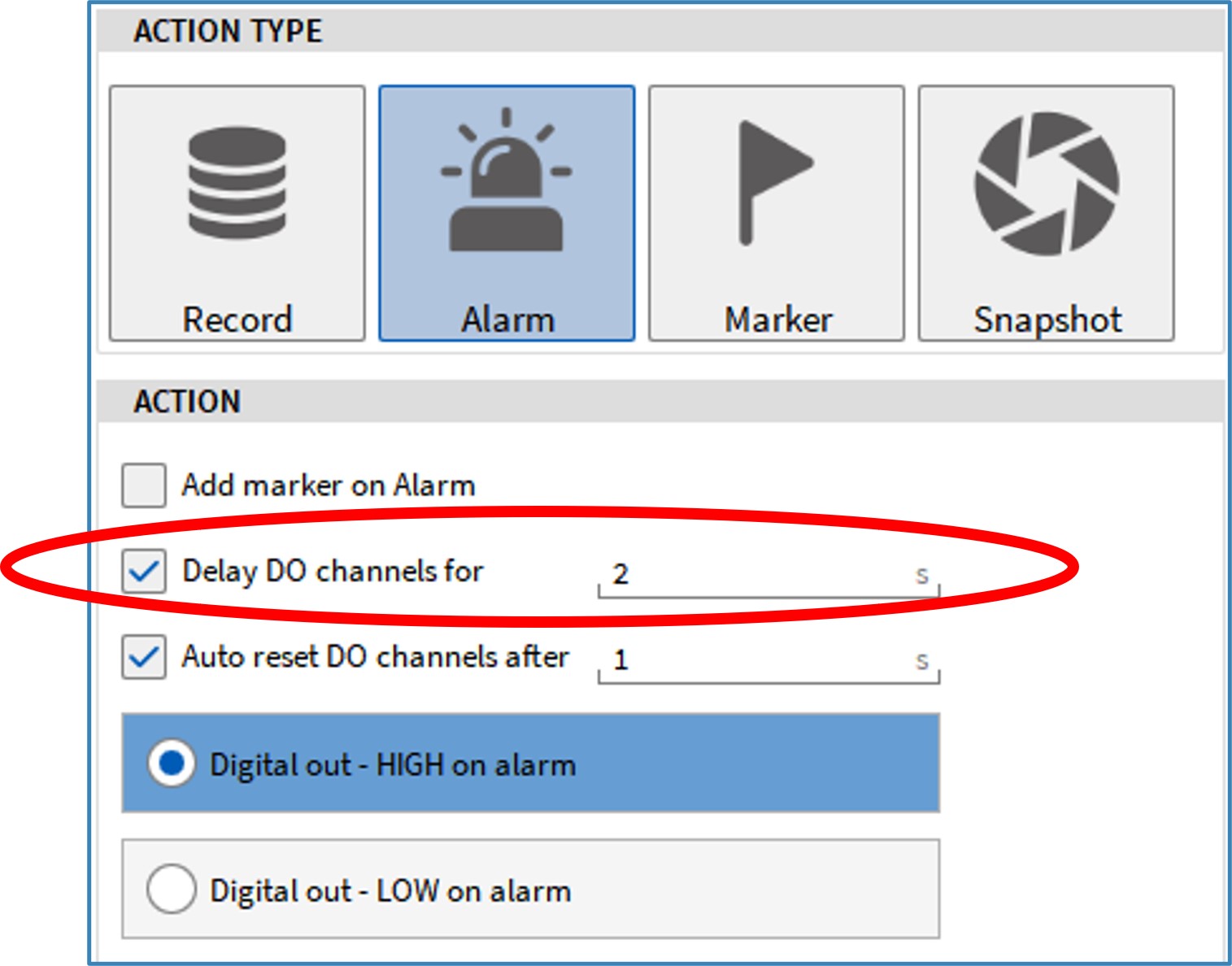 If you configure alarms via our OXYGEN software, e.g. for condition monitoring, and want to set a digital output channel when the alarm occurs, OXYGEN 6.3 now offers the possibility to define a delay for the digital output channel.