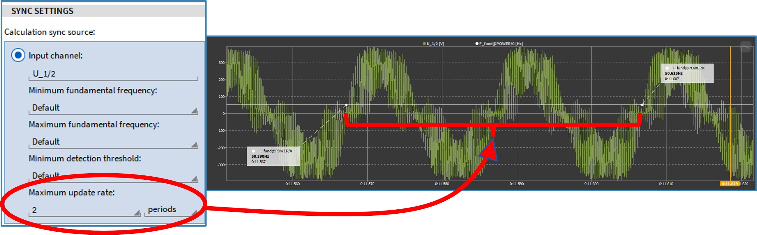 With the OXYGEN power options you can turn any of your DEWETRON measuring systems into a full-fledged power analyzer. In OXYGEN 6.3 we have extended these power options by 2 functions. It is now possible for you to define the number of periods for the calculation intervals.